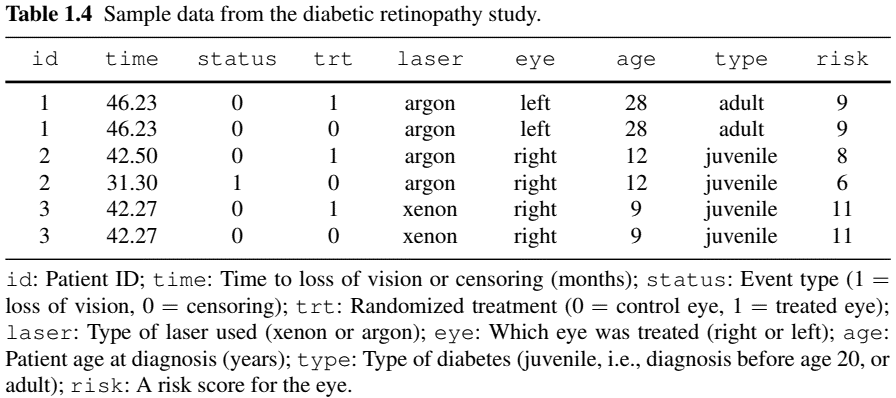 - Subject-level characteristics (baseline variables, number of events per subject)