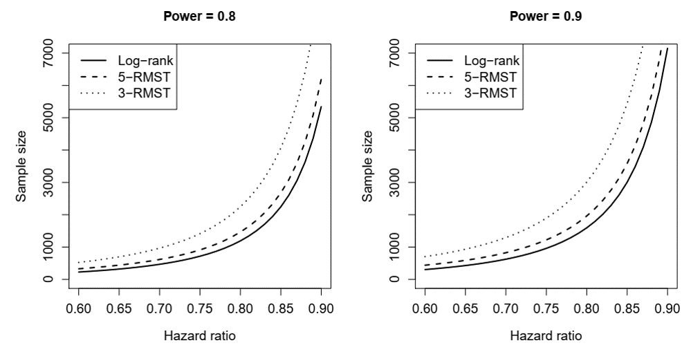 Sample size for Cox model and RMST