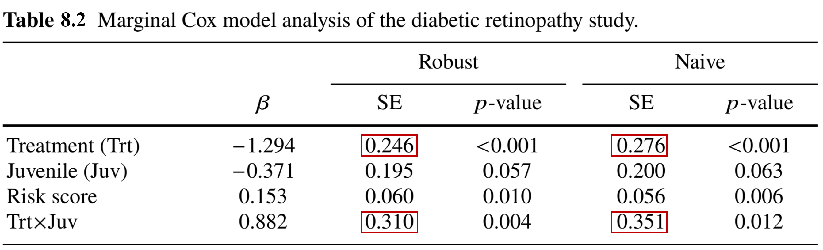 # Fit a bivariate marginal Cox model with treatment, diabetic type