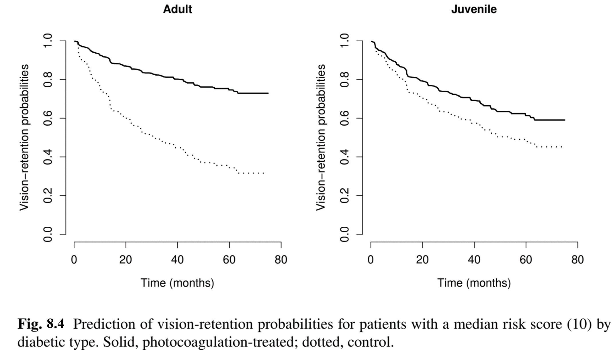 survival::coxph() (II)Design: randomized controlled trial of 197 diabetic patients (plot)