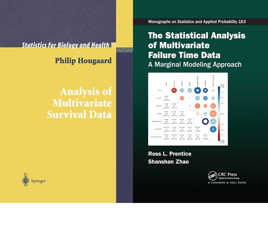 Conditional joint survival \[\begin{equation}\label{eq:multi:fr_surv_reg} \pr(T_1>t_1,\ldots,T_K>t_K\mid Z,\xi)=\exp\left\{-\xi\sum_{k=1}^K\exp(\beta_k^\T Z) \eta_{k0}(t_k)\right\} \end{equation}\]
