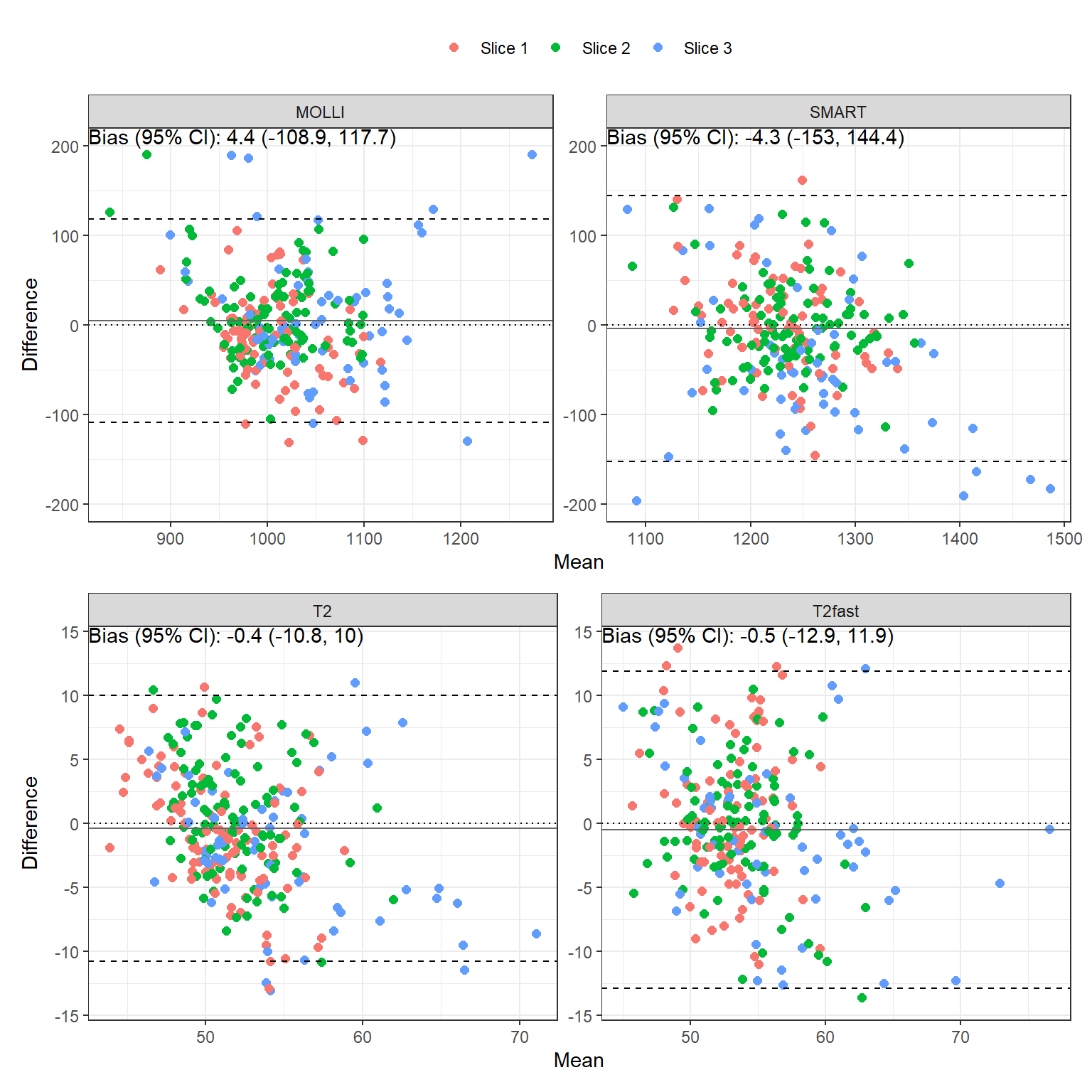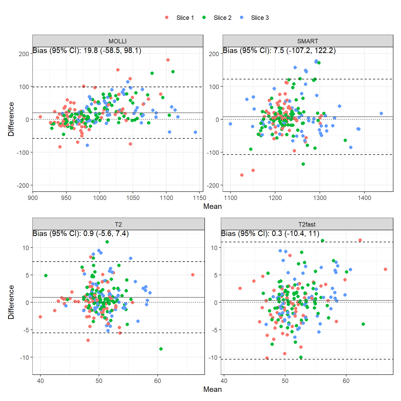 | MOLLI: Std vs DL | aha15 | -3.0 | 10.3 | 0.3% | 0.996 (0.993, 0.998) | p<0.001 |