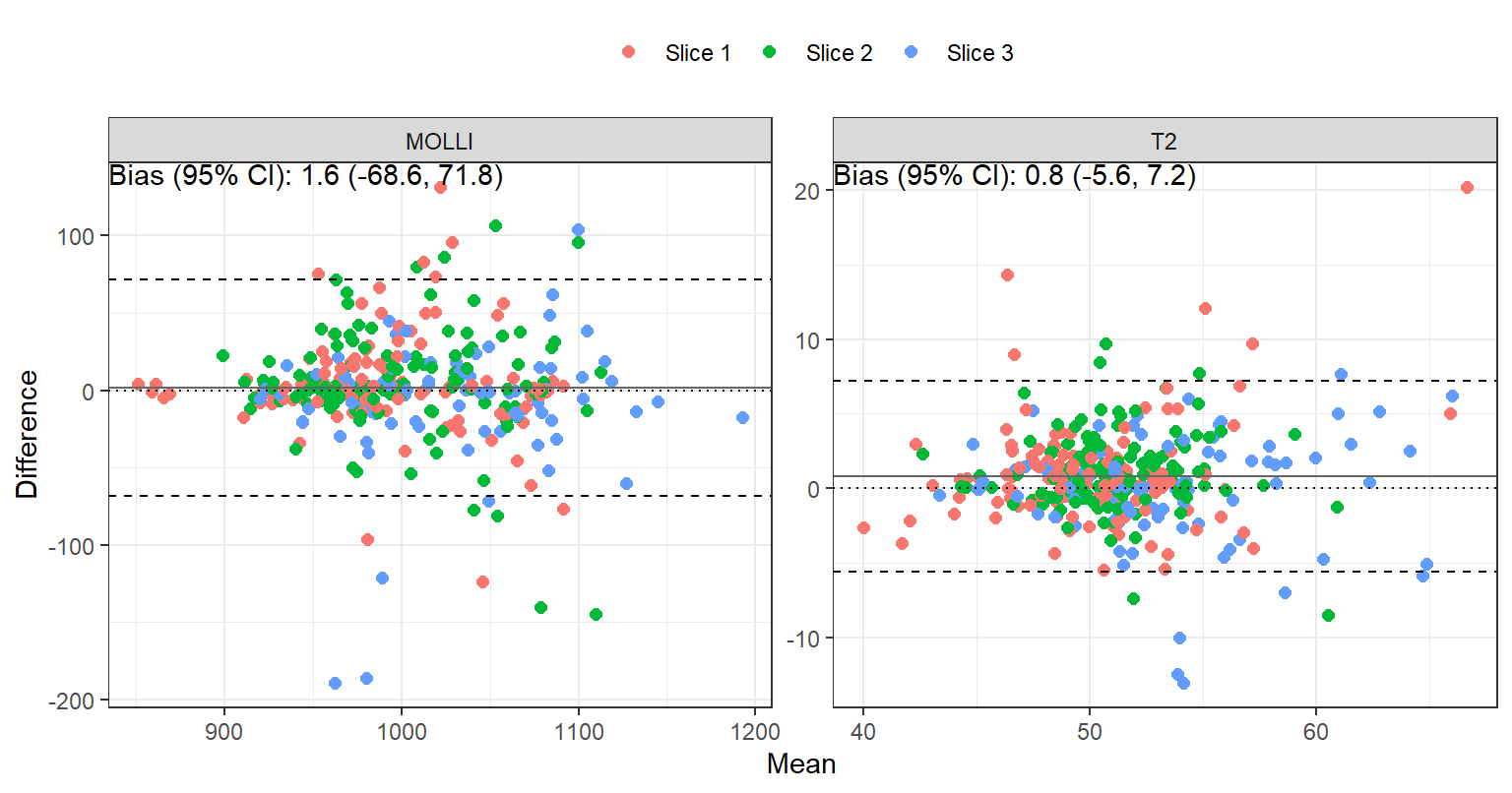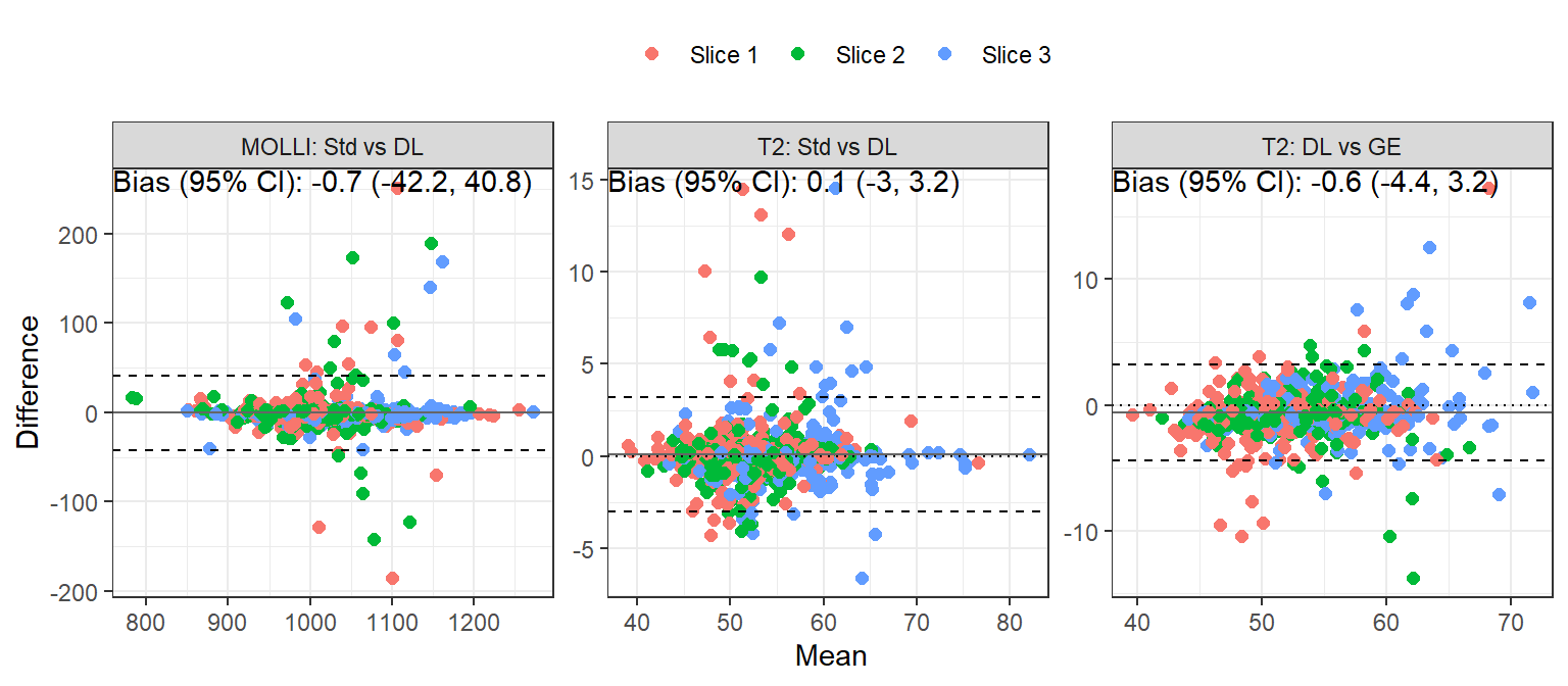 | MOLLI: Std vs DL | aha2 | -1.4 | 19.3 | 0.3% | 0.986 (0.975, 0.992) | p<0.001 |