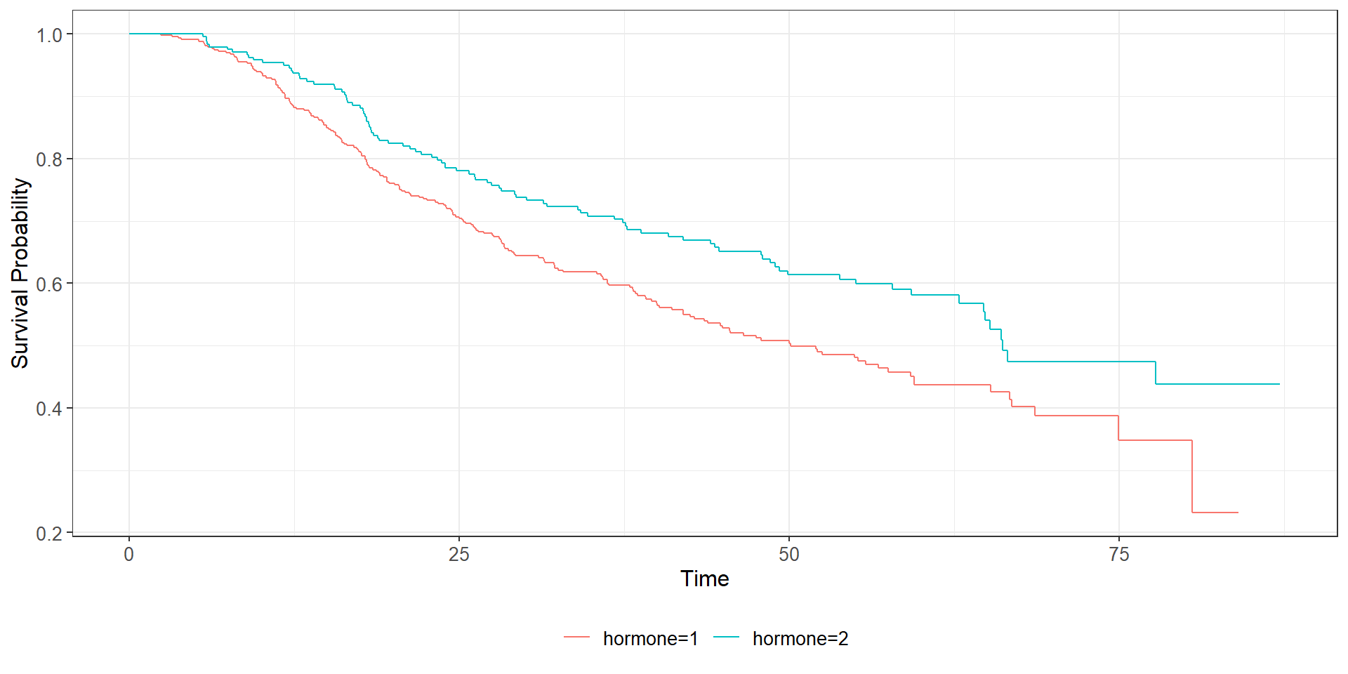 id  time status hormone   age  meno  size grade nodes  prog estrg