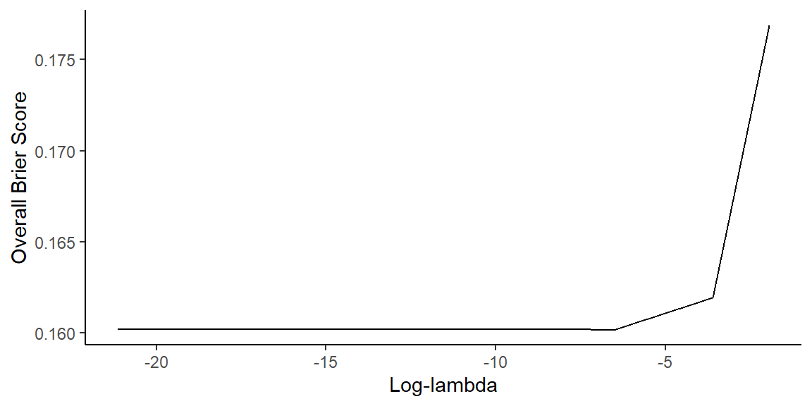 labs(x = "Log-lambda", y = "Overall Brier Score") + # labels