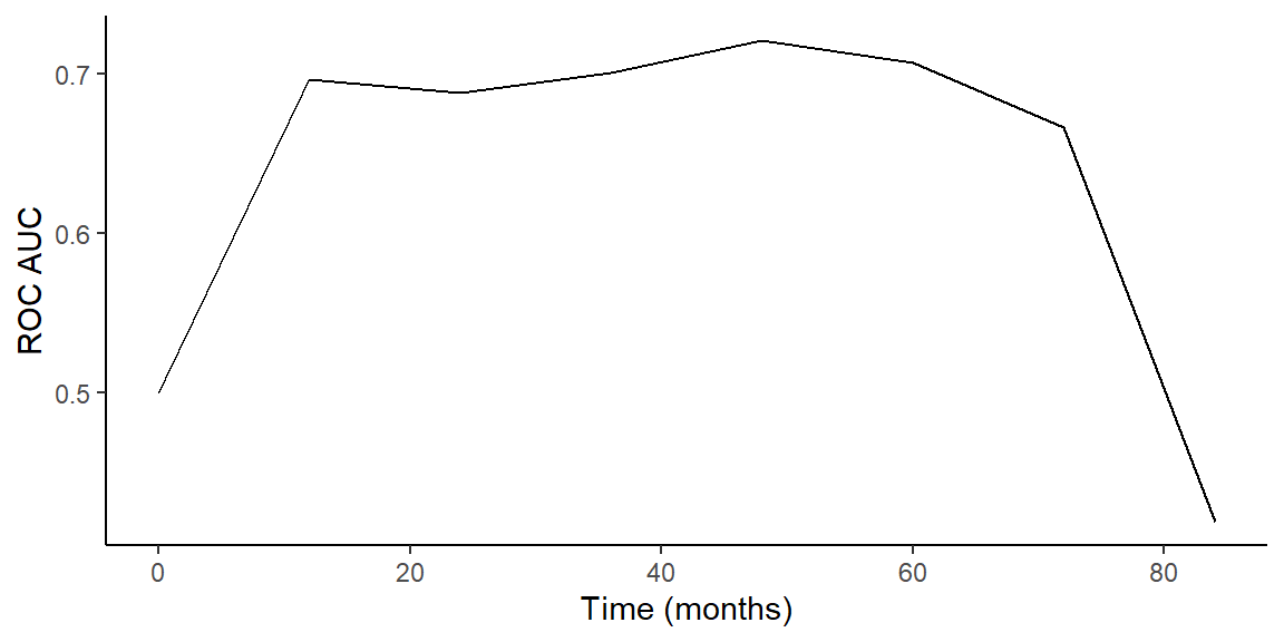 labs(x = "Time (months)", y = "ROC AUC") + # labels